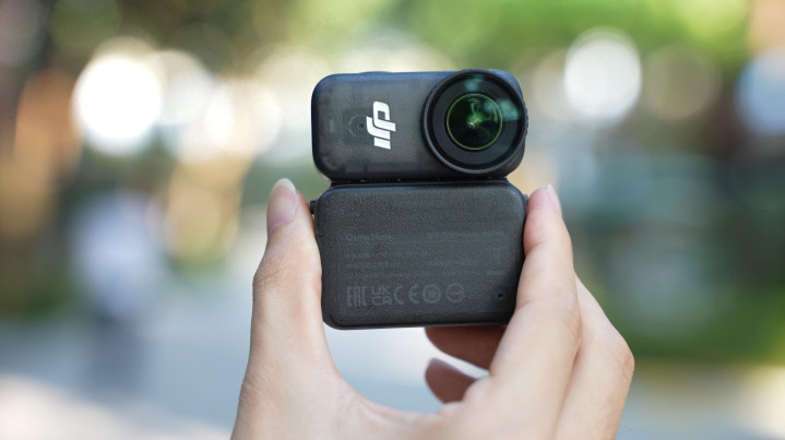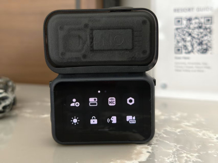 与我们熟悉的Action 4、Action 5 Pro不同,DJI Nano采用了「双本体」设计:即一个主相机和一个图传模块,两者均可以独立工作又能互相控制。换句话说不管你拿起的是哪个模块,都能直接进行操作(不过要录制的话就必须拿起主相机)。