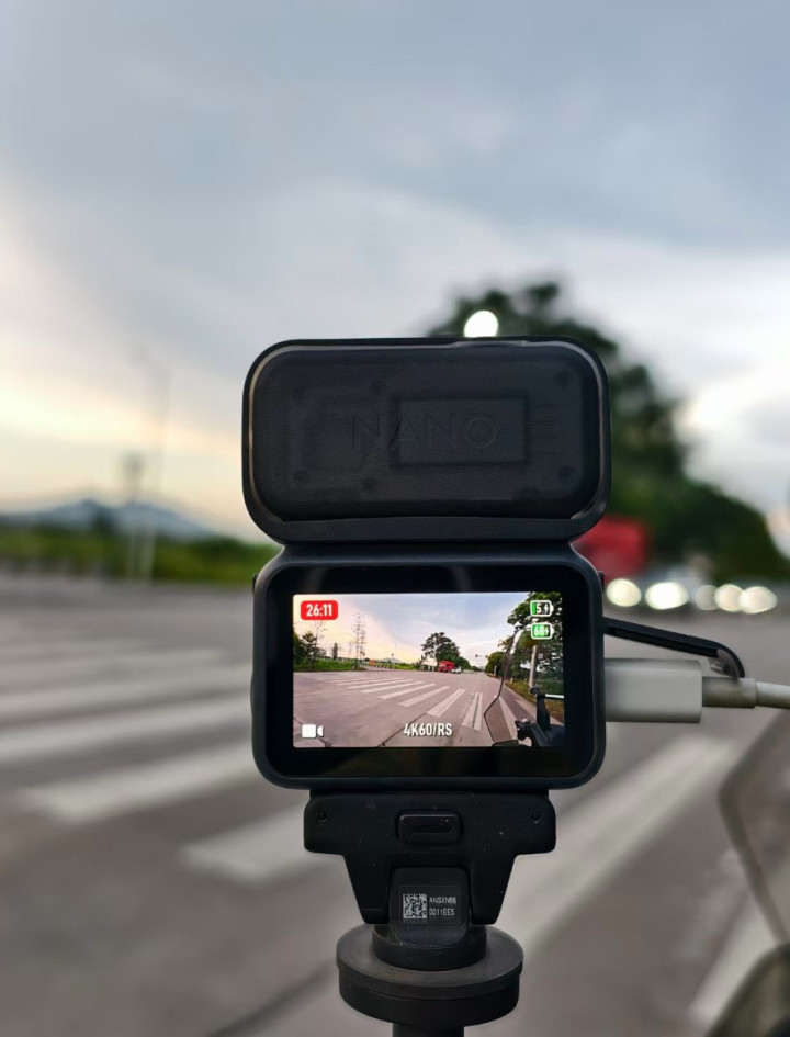 在防抖方面,DJI Nano 也延续了大疆的优势,在开启高防抖的模式下,骑行时所反馈的路面震动和车辆震动都被完全过滤掉,犹如在路面上「滑行」,十分丝滑流畅。