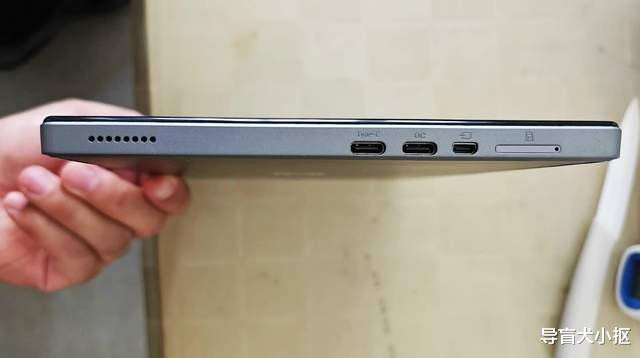 翻转机身到中框与后盖处,ezpadv10的设计也和传统win系统本子一样。像机身中框顶部,有一个醒目的开关机键,左边是熟悉的音量调整按键、耳机孔,中框右边有机器的拓展接口,包括一个迷你HDMI孔、两个全功能的c口,一个扩展卡槽。其它熟悉的双扬声器,底部的磁吸附接口等一应俱全。细节上,ezpadv10的后盖是纯平设计,没有摄像头,没有支架,和手机工艺组装方式相同。