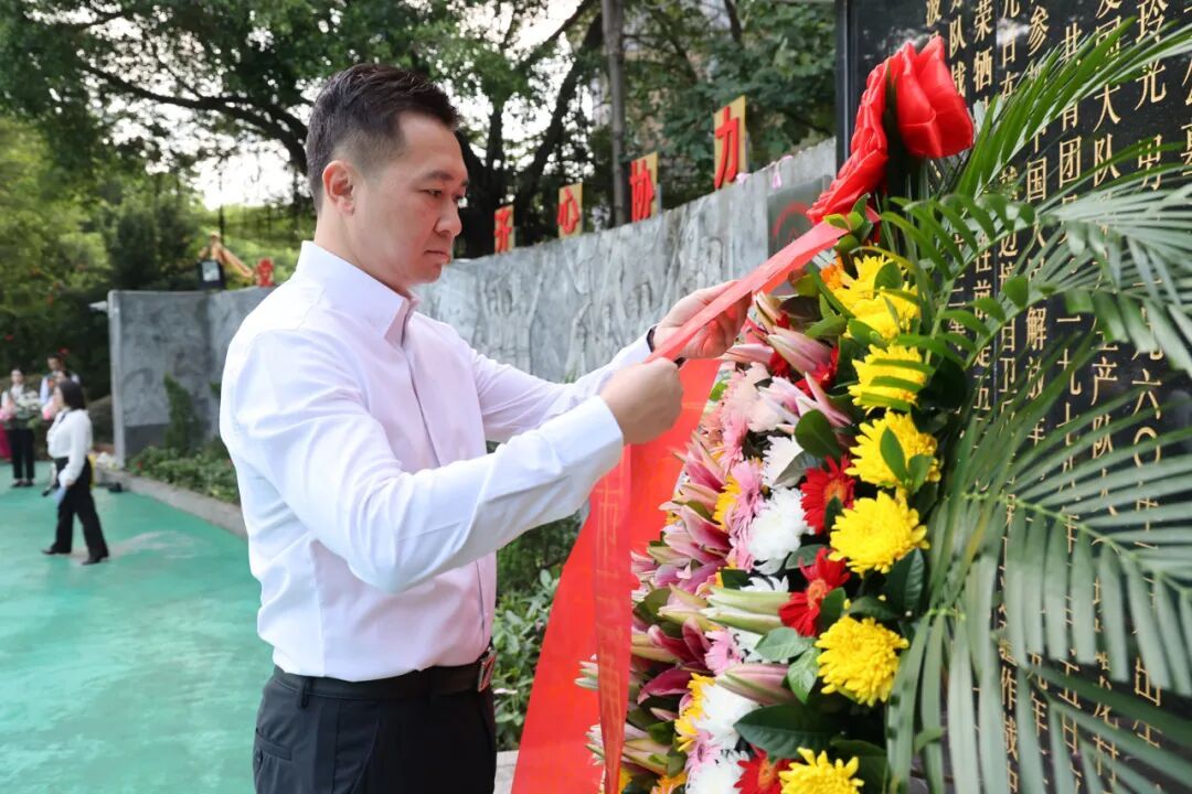 仪式最后,全体人员有序绕行至英烈纪念墙前,向烈士行鞠躬礼并敬献鲜花,驻足瞻仰纪念墙,再次表达对革命先烈的缅怀与崇敬。